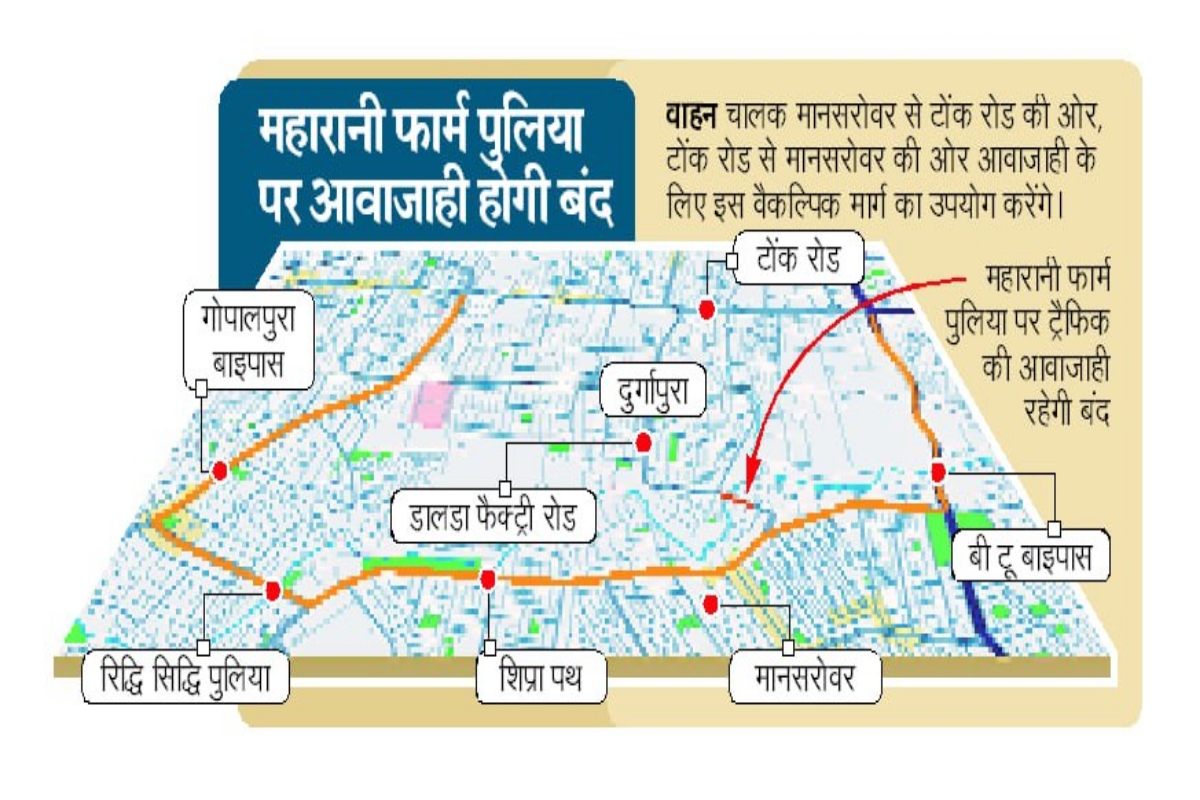 -महारानी फॉर्म, रघु विहार, शांति नगर, महावीर नगर, दुर्गापुरा रहने वाले लोगों को अब मानसरोवर जाने तीन से पांच किमी का चक्कर लगाना होगा।