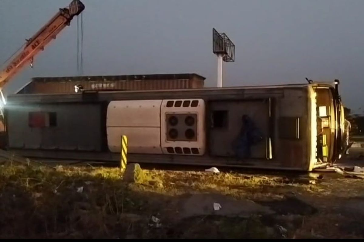 जानकारी के अनुसार शनिवार देर रात स्लीपर कोच निजी बस मंदसौर से खाटू श्याम जा रही थी। बस में बैठे अधिकांश यात्री गहरी नींद में थे। इसी दौरान राष्ट्रीय राजमार्ग 48 पर खेड़ी टोल प्लाजा के पास बस के सामने आए एक राहगीर को बचाने के प्रयास में चालक वाहन से संतुलन खो बैठा और बस पलट गई। वहीं जिस व्यक्ति को बचाने के प्रयास में बस पलटी वह भी बस की चपेट में आ गया, जिसकी मौके पर ही मौत हो गई।
