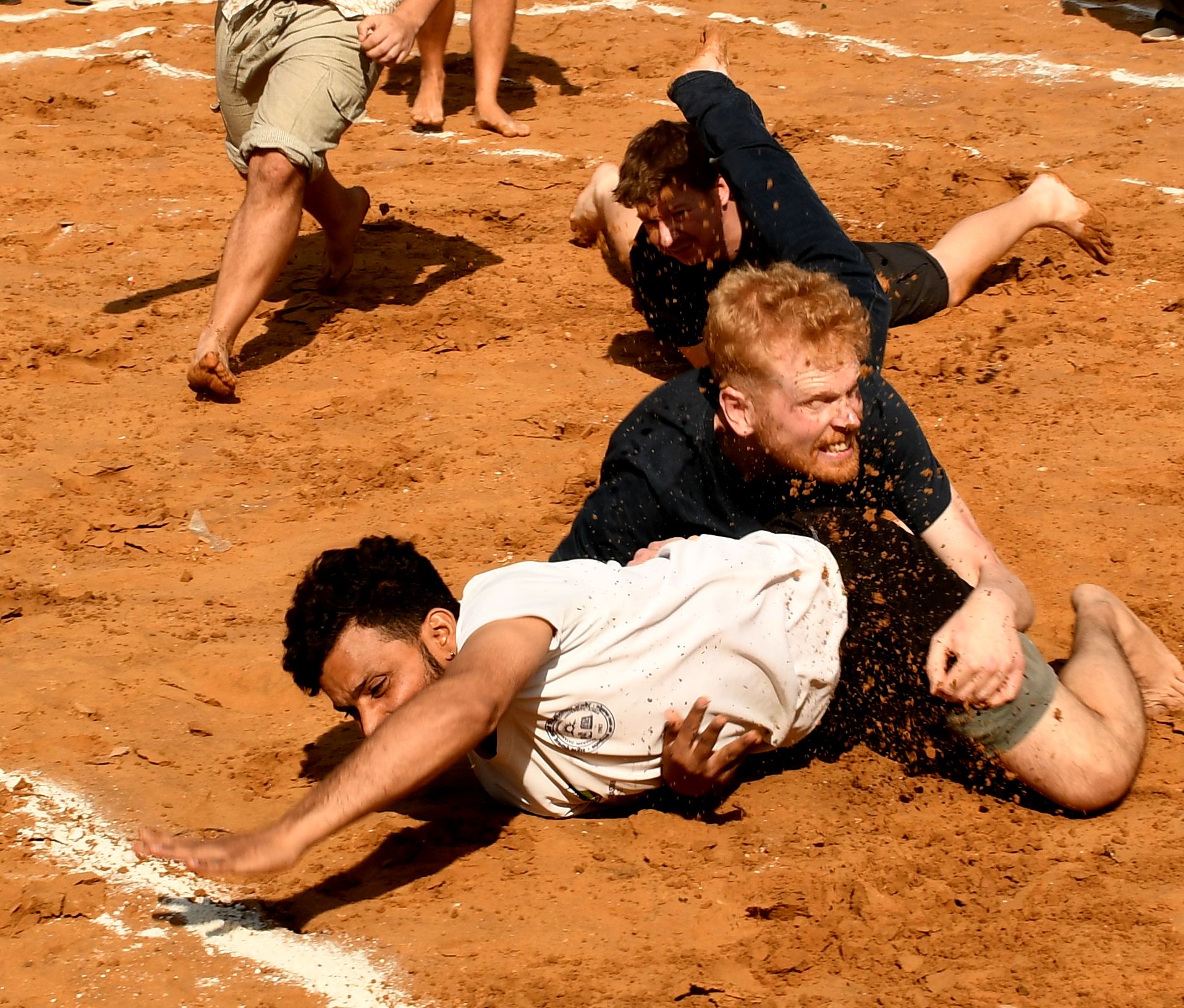 पुष्कर के धोरों में कबड्डी प्रतियोगिता में हिस्सा लेते स्थानीय युवक व विदेशी सैलानी।