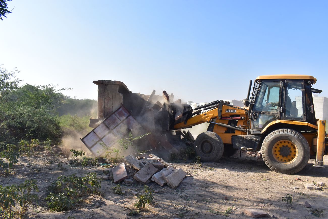 नागौर. सरकारी जमीन से अतिक्रमण हटाता जेसीबी चालक।