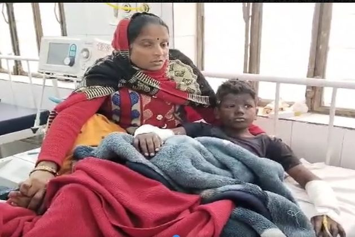 भिवाड़ी. धमाके में झुलसे बच्चों का अस्पताल में उपचार कराते हुूए।