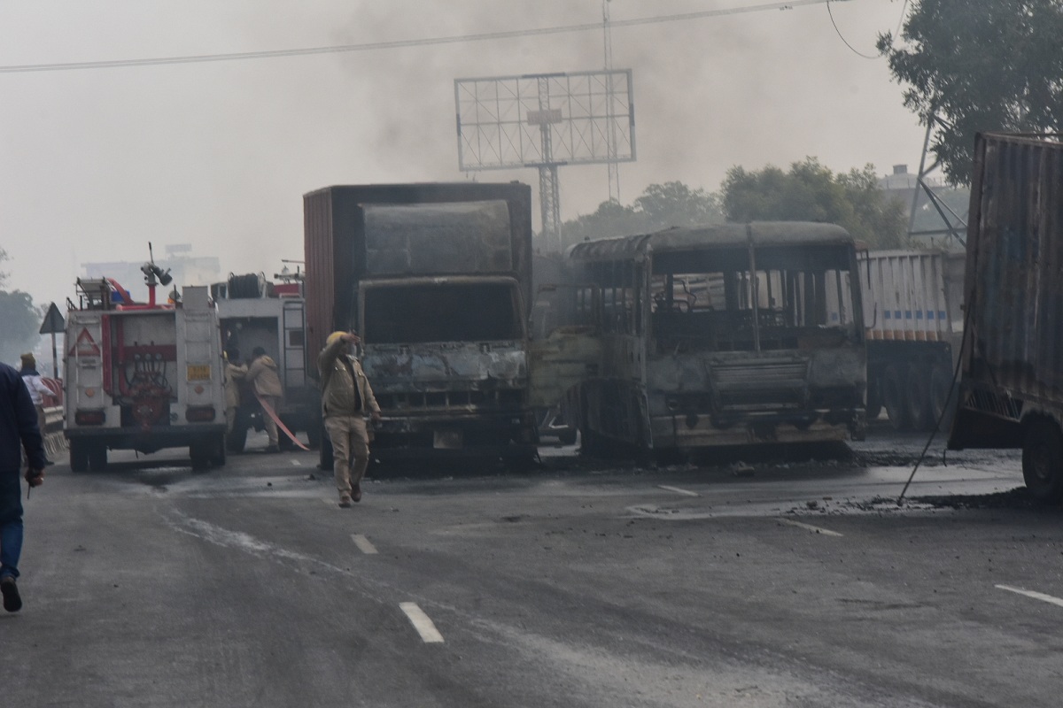 जयपुर। राजधानी जयपुर के लिए आज का दिन ब्लैक फ्राइडे साबित हुआ। सुबह पांच बजे के बाद ही अजमेर रोड स्थित भांकरोटा में ऐसा बड़ा हादसा हुआ कि आग की लपटों से पूरा इलाका घिर गया। हाईवे पर चल रही कई गाड़ियां आग की चपेट में आ गईं। आग की भयावता का अंदाजा इस बात से लगाया जा सकता है कि 29 ट्रक, एक ऑटो, दो बसें, पांच कारें और तीन बाइक हादसे में जलकर खाक हो गए।पुष्पराज पेट्रोल पंप के पास जैसे ही टैंकर बगरू की ओर से आकर टर्न ले रहा था। टैंकर को पीछे से आ रहे एक ट्रक ने जोरदार टक्कर मार दी। गैस टैंकर में तेज धमाके के साथ आग लग गई। सात से अधिक लोग जिंदा ही जल गए, जबकि कई लोग गंभीर रूप से झुलस गए हैं। आग के कारण आशीर्वाद पाइप फैक्ट्री और गोदाम पूरी तरह से जल गए। आस-पास की बीस से अधिक दुकानें भी इस आग में राख हो गईं। कई दुकानों की छतें और शटर भी टूट गए। आग की लपटों ने आसपास के 300-400 मीटर के दायरे में भारी नुकसान पहुंचाया।