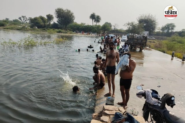जयपुर/ आंधी। पंचायत समिति क्षेत्र के नाभावाला गांव में सैंथल सागर बांध से निकलने वाली सांवा नदी की रपट पर करीब एक माह से बह रही पानी की चादर अब स्थानीय युवाओं के लिए आकर्षण का केंद्र बन गई है। सुबह से शाम तक नदी किनारे नहाने और तैरने वालों की भीड़ लगी रहती है।