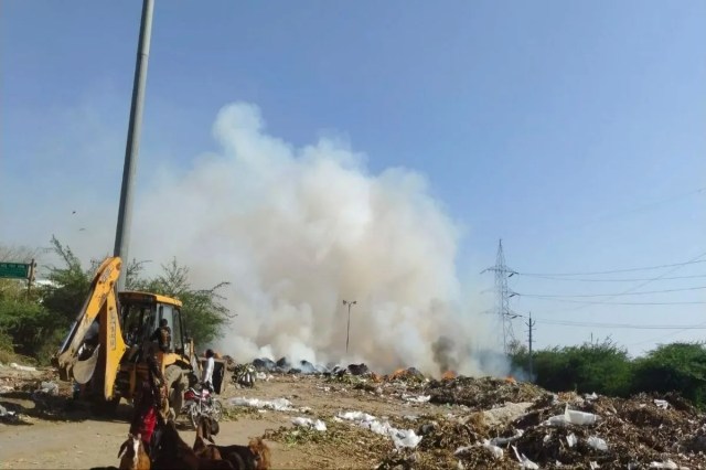 मुहाना मंडी में कचरे में आग, एक किलोमीटर दूर तक दिखाई दिया धुआं
