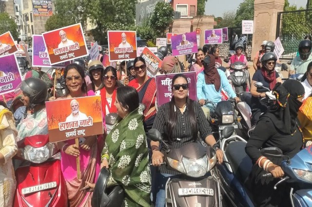 जयपुर। केंद्र सरकार की ओर से प्रस्तावित ‘नारी शक्ति वंदन संशोधन अधिनियम’ को लेकर देशभर में उत्साह का माहौल है। जयपुर भी इससे अछूता नहीं रहा। महिलाओं को राजनीति में 33 प्रतिशत आरक्षण देने वाले इस ऐतिहासिक कदम के समर्थन में गुलाबी नगरी की सड़कों पर जोश और जागरूकता की अनोखी तस्वीर देखने को मिली। जयपुर में सोमवार को ‘नारी शक्ति वंदन अधिनियम’ के समर्थन में महिलाओं ने स्कूटी और बाइक रैली निकालकर अपनी एकजुटता और उत्साह का परिचय दिया। यह रैली विद्याश्रम स्कूल, जे.एल.एन. मार्ग से शुरू होकर टोंक रोड होते हुए अमर जवान ज्योति पर संपन्न हुई। रैली के दौरान महिलाओं ने हाथों में तख्तियां और नारों के जरिए महिला सशक्तिकरण का संदेश दिया और प्रधानमंत्री नरेंद्र मोदी के प्रति आभार व्यक्त किया।