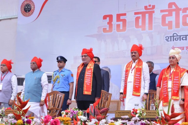 उप मुख्यमंत्री एवं उच्च शिक्षा मंत्री डॉ. प्रेमचंद बैरवा ने कहा कि शिक्षा सबसे बड़ी शक्ति है। उन्होंने युवाओं को धैर्य, अनुशासन और ईमानदारी के साथ जीवन में आगे बढ़ने की प्रेरणा दी। राज्यसभा सांसद राधामोहन अग्रवाल ने विश्वविद्यालय के इतिहास का उल्लेख किया। कुलगुरु अल्पना कटेजा ने उपलब्धियों की जानकारी दी। इस अवसर पर छात्र-छात्राओं को डिग्री और पदक प्रदान किए गए।