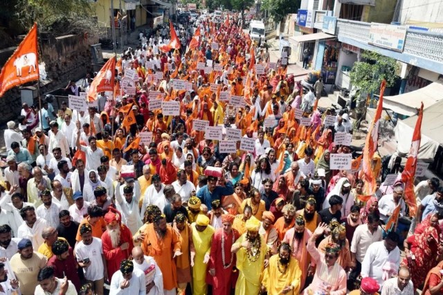 नंगे पांव साधु-संतों ने दिखाया गो-सम्मान, संरक्षण व संवर्धन का संकल्प