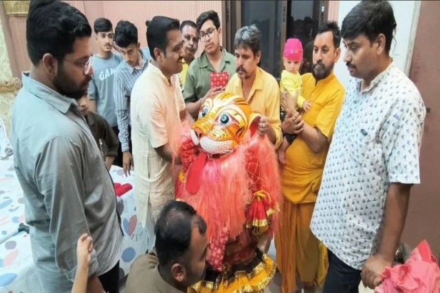 कस्बे के सोनारों का बास स्थित भूरालाल सोनी के आवास से गुरुवार शाम करीब 6 बजे नृसिंह भगवान की झांकी तैयार की गई। पुजारी स्वरूप शर्मा के सानिध्य में यजमान कालूराम, धूड़ाराम, रामलाल व फूसाराम सोनी ने अभिषेक व षोड्षोपचार विधि से पूजा-अर्चना की। इस मौके पर विष्णु सहस्त्रनाम व गीता के पुरुषसुक्त अध्याय का पाठ किया गया। उसके पश्चात् भगवान विष्णु के नृसिंह अवतार की झांकी निकाली गई। इस झांकी के आगे हिरण्यकश्यप उत्पात मचाते हुए चल रहे थे। नृसिंह भगवान के रूप में रामाकिशन शर्मा व भक्त प्रहलाद के रूप में रोहित शर्मा शोभायात्रा के साथ चल रहे थे। सैकड़ों की संख्या में श्रद्धालुओं ने जयकारों के साथ शोभायात्रा में भाग लिया। यह झांकी सोनारों की गली, व्यास चौक, गणेश मंदिर, गणेश मार्केट, सदर बाजार से होते हुए चारभुजा मंदिर पहुंची।