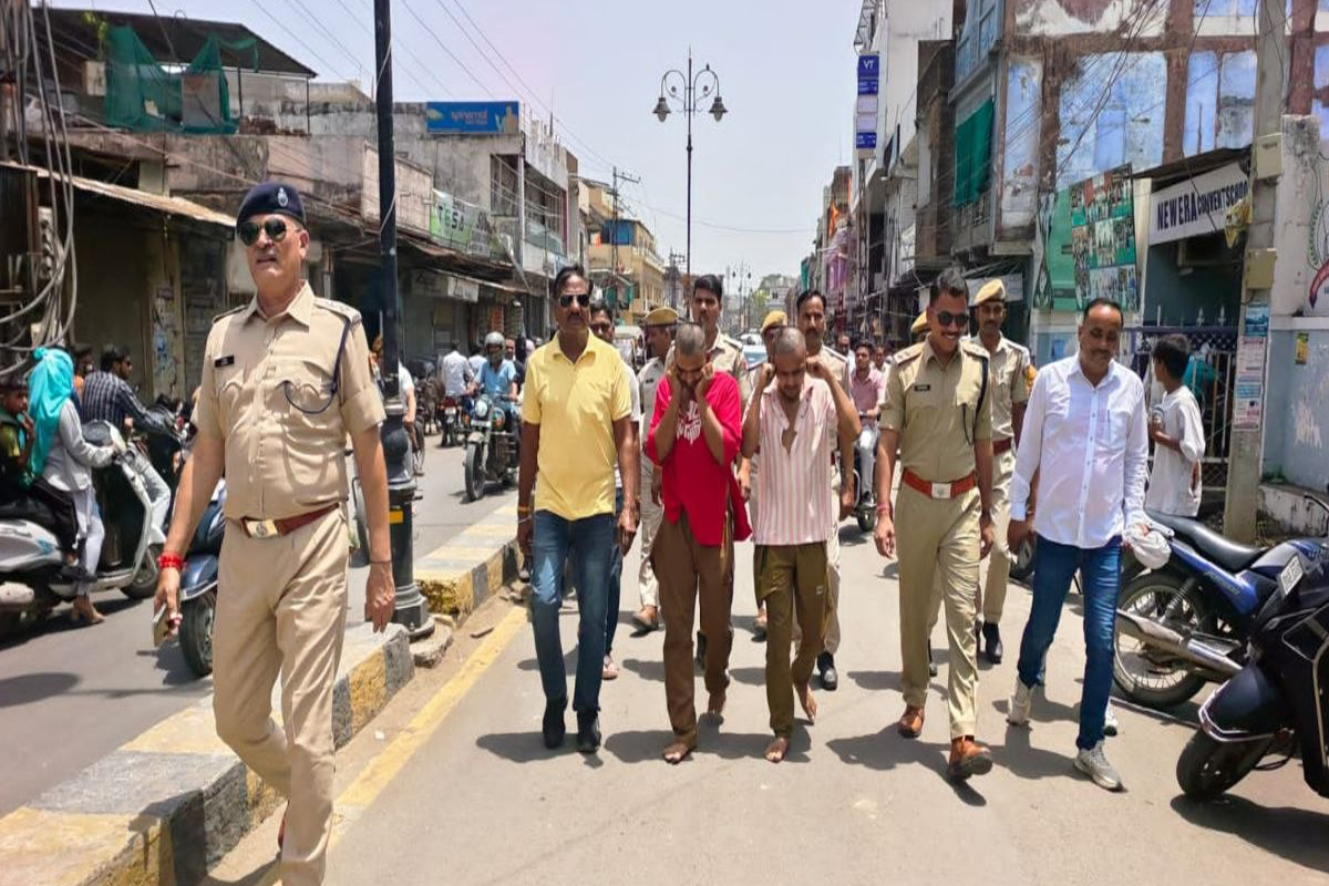 बारां। शहर में चर्चित फिरौती कांड के आरोपियों के खिलाफ पुलिस ने सख्त कार्रवाई करते हुए गुरुवार को दो आरोपियों का मुंडन कराकर उन्हें शहर की सड़कों पर पैदल घुमाया और घटना स्थल की तस्दीक कराई। इस दौरान आरोपी कान पकड़कर “अपराध करना पाप है” कहते हुए सिर झुकाए नजर आए।